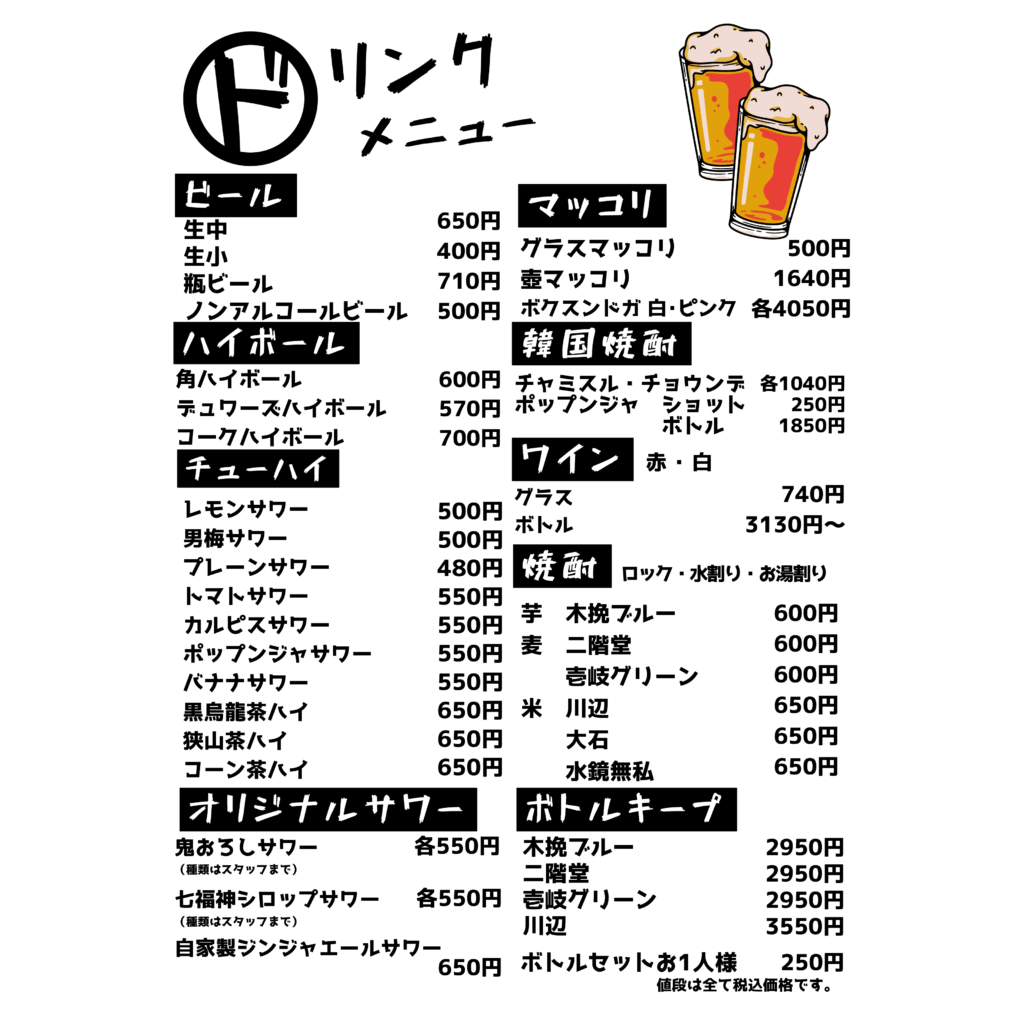 ドリンクメニュー